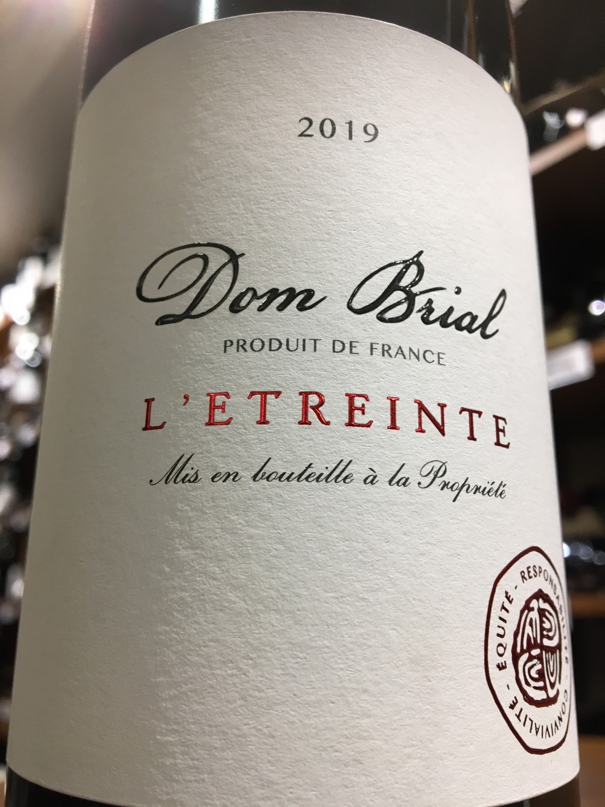 Vin rouge Dom Brial « L’Etreinte », Côtes du Roussillon 2021 mis en bouteille à la propriété.Grâce à un assemblage idéal composé à 40 % de Syrah, 30 % de Grenache noir, 15 % de Mourvèdre et 15 % de Carignan, et d’un terroir géologiquement riche et bénéficiant d’un microclimat , ce vin nous offre f...