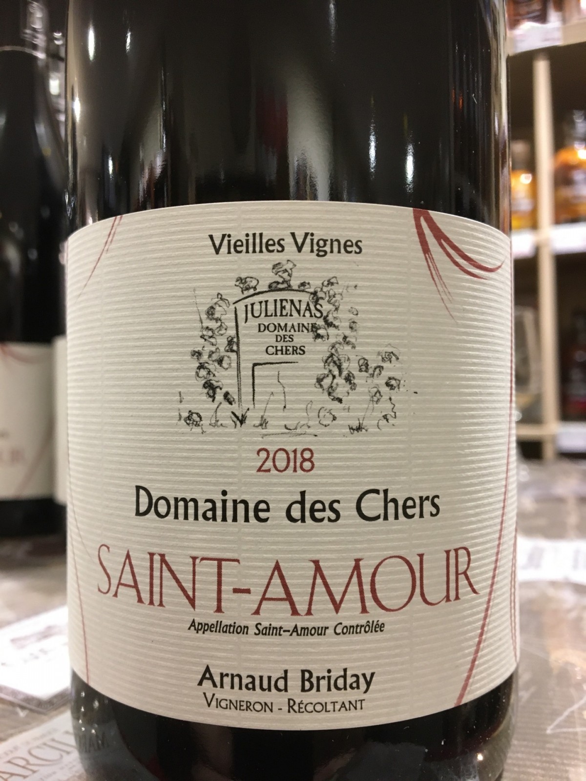 L’Etreinte, en blanc ou en rouge, tout droit venu du Roussillon, et bien sûr, le Saint Amour, cru incontournable du Beaujolais, élaboré avec une sélection de vieilles vignes de gamay noir à jus blanc,