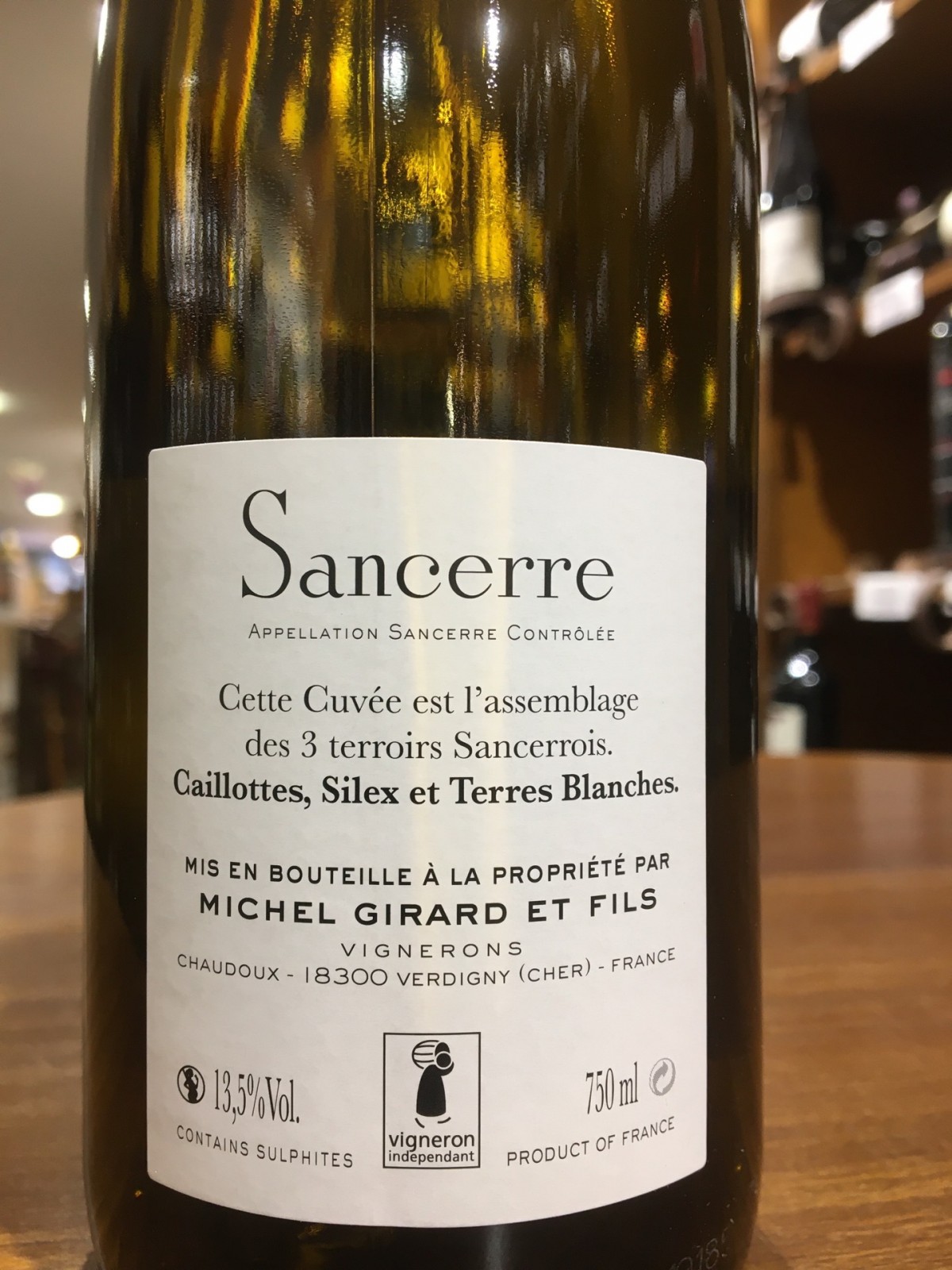 Un nom connu de tous...et pourtant, au sein de cette appellation de Loire située dans le département du Cher, on trouve des qualités très disparates ! Défenseurs depuis toujours du noble métier de vigneron, nous vous proposons depuis 2006 l’excellent travail, régulier et rigoureux, du domaine Michel GIRARD. Pure expression du sauvignon blanc, ce Sancerre est un vin parfaitement équilibré entre alcool et acidité, bien sec c’est-à-dire sans sucres résiduels donc sans risque de refermentation en bouteille pouvant provoquer un léger perlant inadapté pour ce vin, au fruité net et gourmand, long en bouche, signe de vendanges saines et mâtures. Servi frais mais pas froid, il sera dégusté en apéritif avec quelques crevettes (provenant de La Marinière du Neubourg) décortiquées, assaisonnées puis poêlées à l’huile d’olive française Les Tannes en Occitanie. Compagnon évidemment classique d’un pavé de poisson cuit à l’unilatérale (pour conserver tout son moelleux), il ravira également vos papilles avec un poulet fermier, de chez la Boucherie BRÉVAL par exemple, cuit lentement au four et accompagné de légumes de saison. Et si votre bouteille n’est pas encore vide, osez pour votre dernier verre un toast de fromage de chèvre passé au four, c’est un vrai régal ! Si vous servez une salade avec votre fromage, faites une vinaigrette très légère de façon à ce que vin et fromage restent les rois de la fête. Belle dégustation et bon appétit !